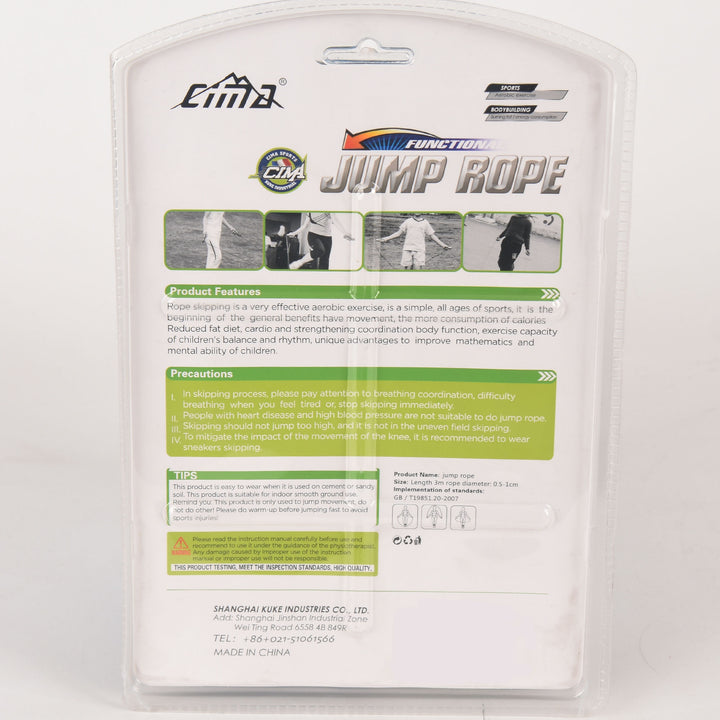 The CIMA Jump Rope J635 is a versatile, adjustable jump rope, essential tool designed to maximize your aerobic and cardio fitness. Specifically sized to accommodate a wide range of users, it provides a highly effective, full-body workout that is key to strengthening muscles and significantly boosting body coordination for athletes of all levels.